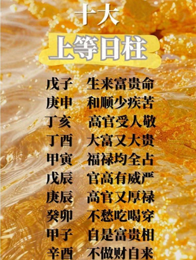 以下为您梳理广受认可的 “十大上等日柱” 及其核心解析,按格局特点分类如下: