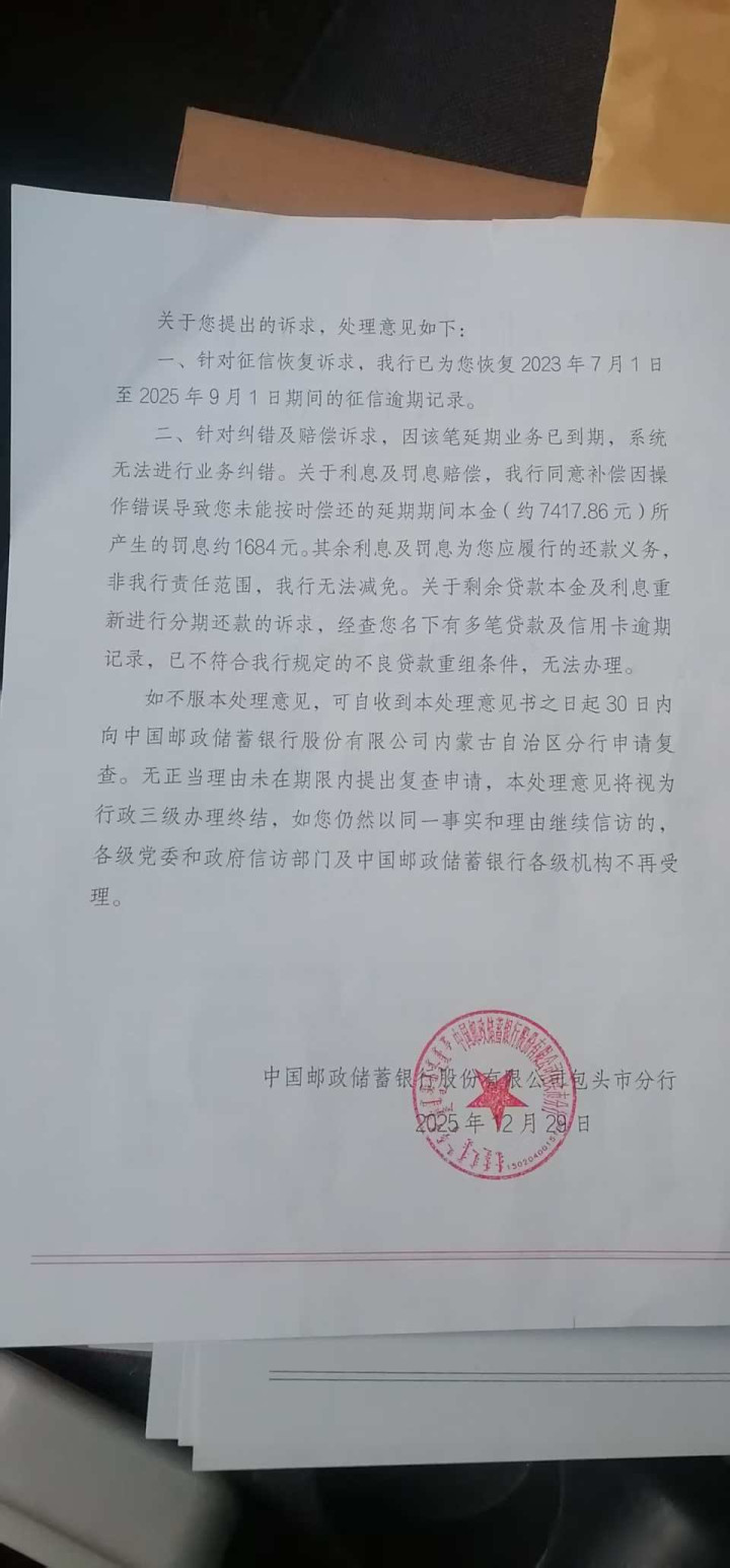 更让人担心的是,2025年10月底公证处发出通知,要求五天内不提出异议就出具执行证书,强制执行他家的房子,那是他们全家唯一的住所,银行这才缓慢回复信访,承认确实有错,但只赔偿一千六百多块钱的罚息,拒绝重新分期,理由是系统无法更改,还说他有逾期记录,不符合贷款重组的条件。