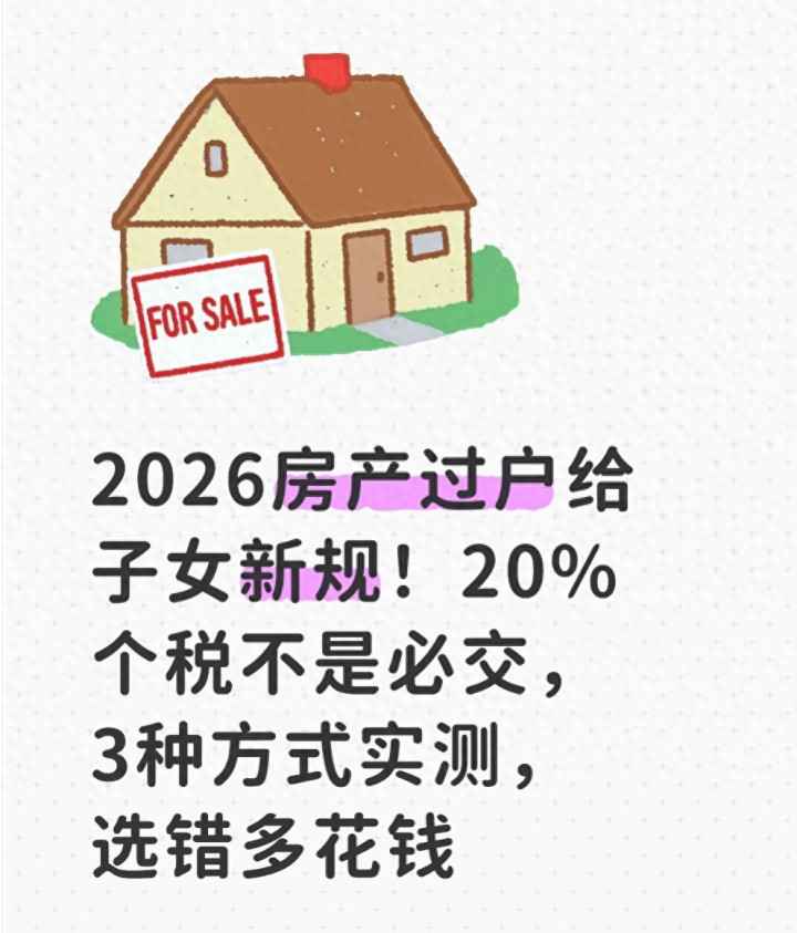 开云官方体育app下载 2026房产过户给子女新规! 20%个税不是必交 3种方式实测 选错多花钱