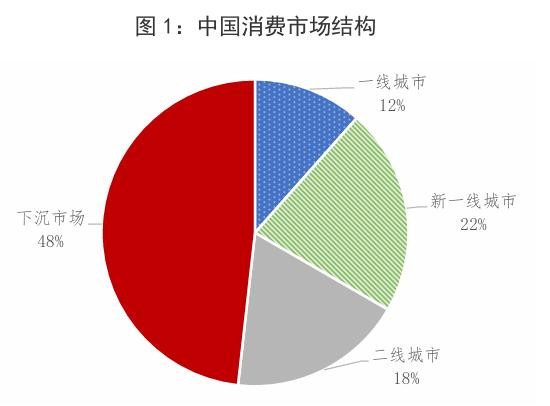 三线及以下城市、县镇与农村构成的“下沉市场”, 人口约占全国70%,消费约占全国48% 。