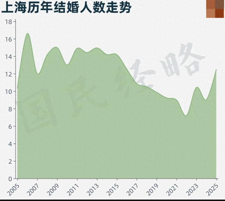 上海结婚人数比低谷时多了73%,但全国平均增速也就几个点。专家说这可能是短期现象,适婚年龄的人少了,未来结婚人数还是会下降。2025年结婚的人,明年出生率会不会涨还不知道。