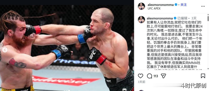大概早有猜想我方要被废弃,莫罗诺在赛后发了一条动情的Ins,字字王人是请求:“若是这是我终末一次踏上八角笼,我也会抬头离开。但在我心里,最完整的结局,是再打终末一场,手脚我的退役战。