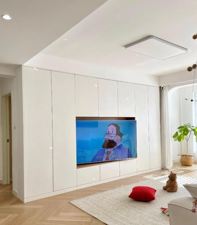 电视背景墙做满柜,看起来确实干净,但只要家里有孩子,问题马上就来了。