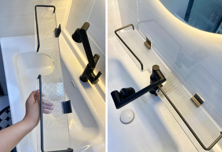 尤其是洗漱时,伸手总要往一侧够,时间久了会下意识把东西堆在台面上。