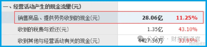 销售商品、提供劳务收到的现金总额达到了28.06亿元,同比增长11.25%。
