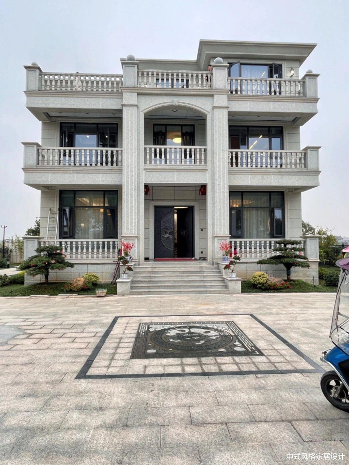 建筑外立面延续传统中式的端庄与开阔,内部则依现代生活脉络从容划分。一层开放相连的客餐厨空间,承载着全家共处的烟火日常;二楼套间式的卧室与书房,为每位家人辟出一处独享的安适之境;拾级而上,三楼的休闲区与开阔露台相连,洗衣房隐于一侧,使劳作与休憩皆从容有度。